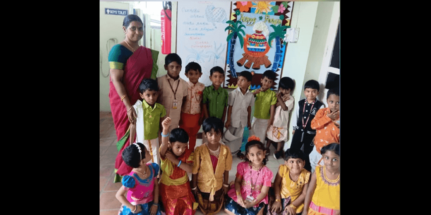 We have celebrated the harvest festival pongal Kids wear traditional dress and knew the importance of Pongal celebration Sweet pongal was prepared in the campus and served to all Kids performed dance and songs Happy Pongal to all