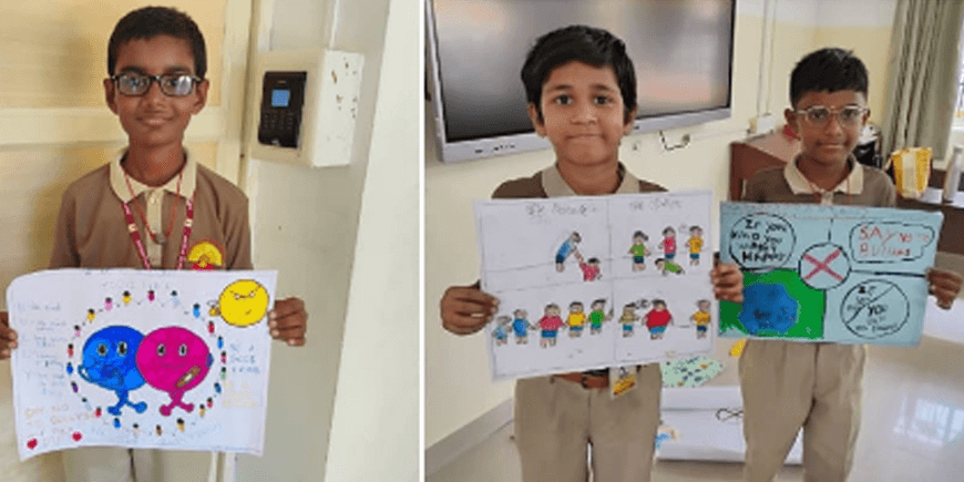 As per the CBSE circular to promote mental health awareness, Aditya Vidhyashram organized a Poster Making Competition on the theme “Say No to Bullying.” Students of Grades 3 to 5 participated with great enthusiasm, expressing their ideas on kindness, empathy, and respect through colorful and creative posters. The activity helped children understand the importance of treating everyone with care and standing up against bullying. It encouraged them to spread positivity and contribute to making Aditya Vidhyashram a happy, safe, and bully-free school.