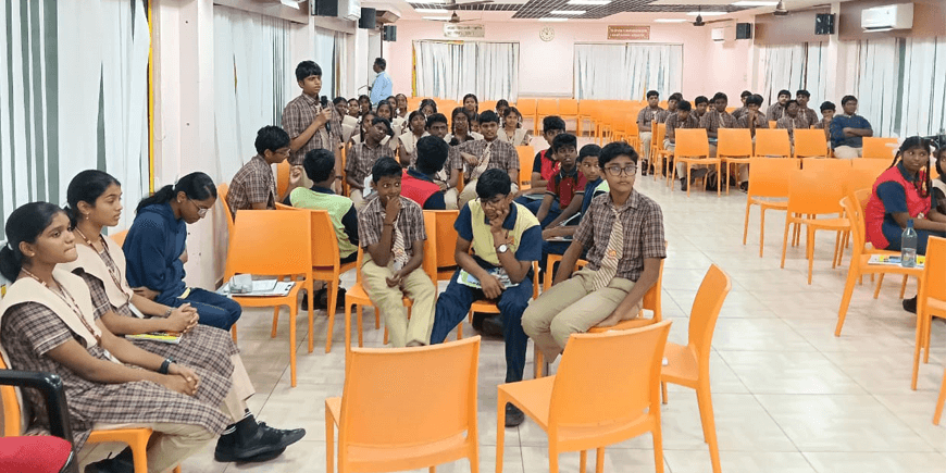 Today we spotted the future environmentalists in Class IX of Aditya Vidyashram Poraiyur. Although they remained unappreciated due to the absence of Jury Mr. Vijaya Kumar from whom they were about to learn many things to make a perfect future generation for Mother Earth, I would like to mention here they were fabulous in their research studies. [4:35 PM, 12/6/2025] +91 8072 055 842: Kindly have a look at the presentations of the students where Theekshana explains the reason for the Earth’s Overshoot Day and says we don’t inherit the planet from our ancestors we borrow it from the future generation so we should keep it safe. Hannah clarifies Mrityunjay’s doubt that individuals can’t change the society by saying that just as a tiny sparkof a matchstick can ignite raging fire in forest, a small good deed can grow into a significant change. Please have a look at the Thara’s and Karishma’s performances where they beautifully put forward their studies come with the solutions.