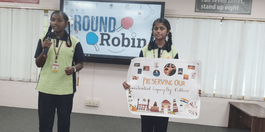 Though some students’ performance fell short of expectations, and upon reflection, it was clear they did not dedicate enough time to preparation, few students with well preparation and understanding came with the readiness of preserving cultural heritage. Hiranmayi of class VIII threw a question to audience if they had ever wondered what connects them to their ancestors….she came up with answer too that it’s not just history but our Culture as well. Anshka said … Nation that forgets its culture looses its identity. Nakshatra and Hasmitha refered to a person without culture as a tree without root. Jury Mrs. Anusuya from Social Department gave them valuable information about UNESCO and its work areas. Hope for the best session next time.